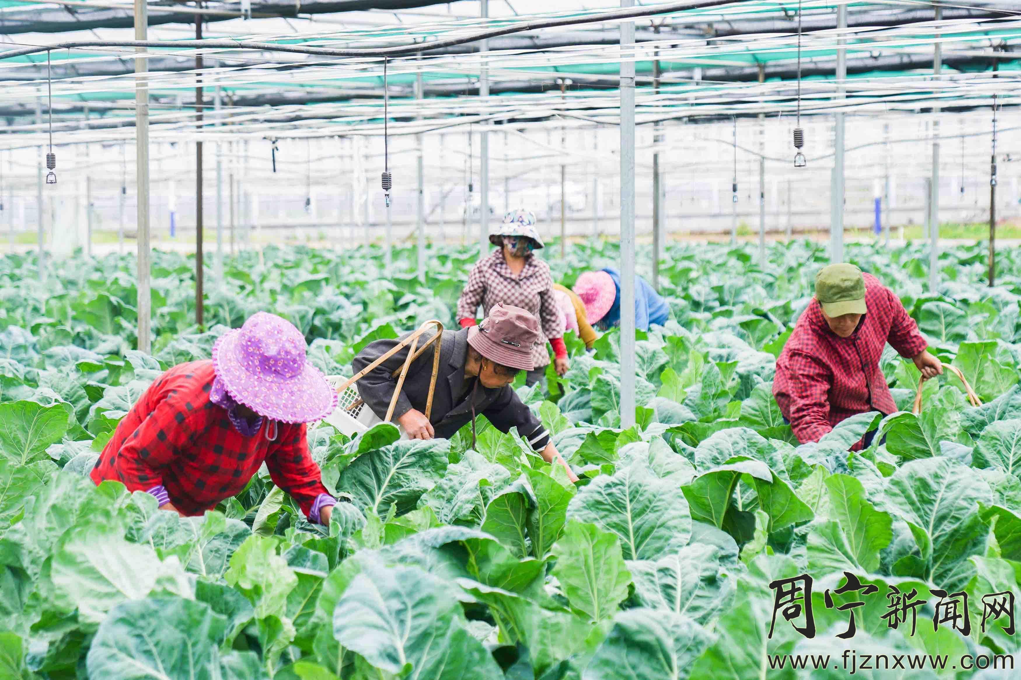 4月17日,走进周宁县李墩镇云埔蔬菜专业合作社种植基地内,大片的花菜长势喜人,不远处,村民们正忙着砍菜、堆菜、分拣……