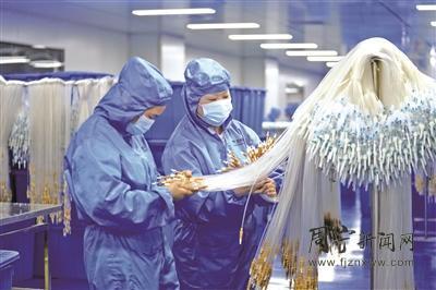 ▲银海万向医用科技有限公司生产车间内,工人对产品进行人工全检 叶晓晖 摄
