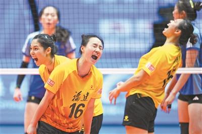11月19日,福建队球员梁桂倩(中)在比赛中庆祝。