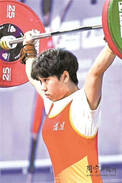 ▲第十五届全国运动会举重女子55公斤级决赛,魏婷娜逆袭夺冠 新华社 摄