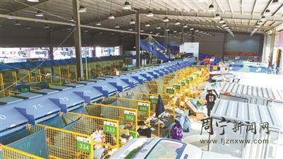 ▲在县级快递分拣中心内,工作人员通过自动化分拣设备分拣快递 陈义冰 摄