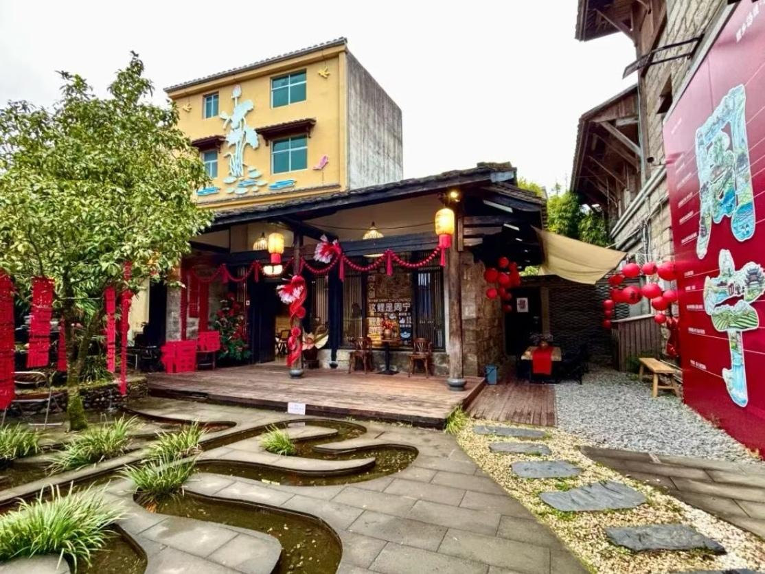 “云端壹号”乡村共创平台 不远处,由老屋改造而成的“云端壹号”乡村共创平台里,福字窗花、手编中国结和鱼形灯笼将空间装点得红火又雅致。几位身穿新衣的小朋友正围在长案前,将蘸满朱砂的拓包,均匀地拍打在福版上。揭起宣纸的瞬间,一个清晰的、带着纹理的“福”字跃然纸上。“哇!我的福出来了!”孩子雀跃起来,他们清脆的笑声,为空间增添了蓬勃的生气。