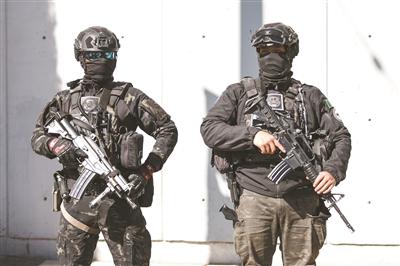 2月23日,在墨西哥首都墨西哥城,安全人员在街头执勤。