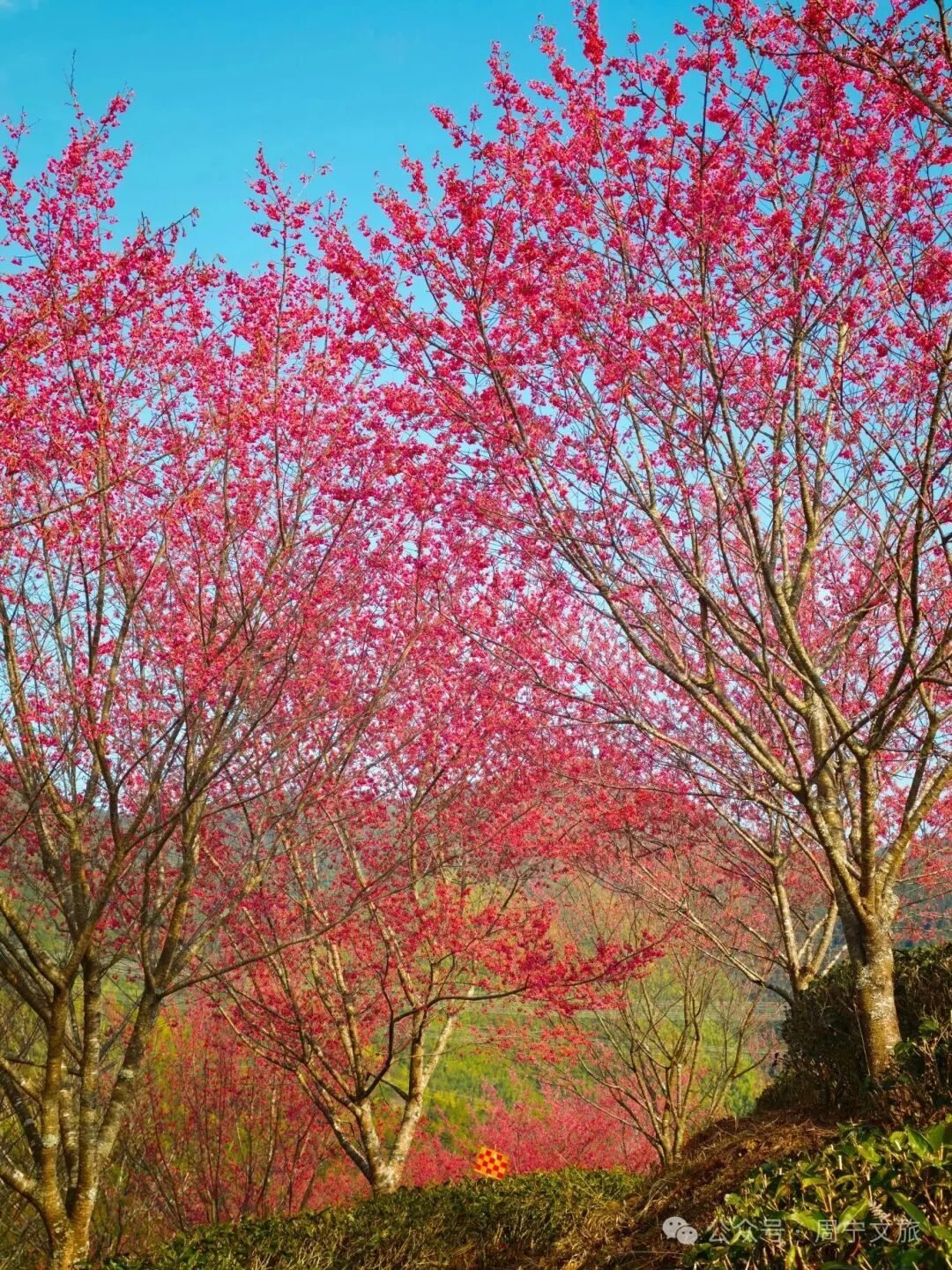 罗曦 摄 沿着茶园步道往深处走 错落的樱花树织成粉色长廊 阳光洒下斑驳光影 走在其中像闯进宫崎骏动漫✨ 枝头樱花或肆意绽放 或含苞待放 鲜活又治愈 让人忍不住放慢脚步