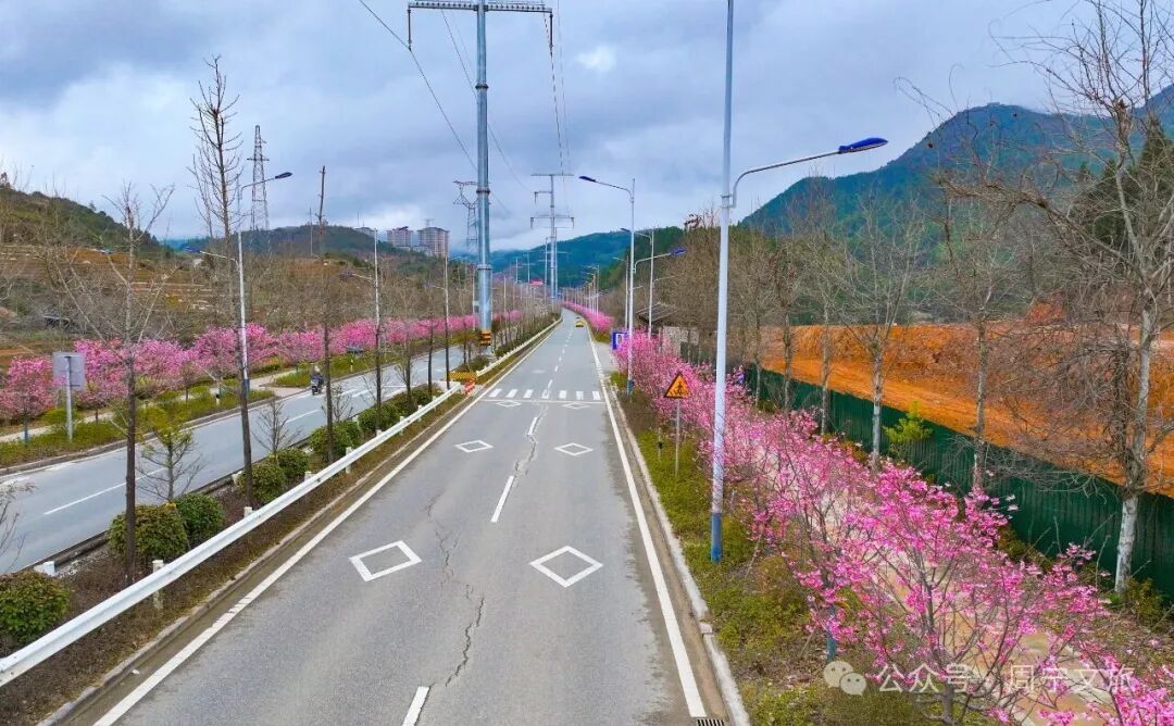 罗曦 摄 走进纵三线 最先映入眼帘的是 一簇簇、一团团的 樱花、美人梅缀满枝头 粉得透亮、嫩得发光 把纵三线裹成了“浪漫隧道” 开着车穿行其中 就像闯进了甜甜的粉色童话世界~