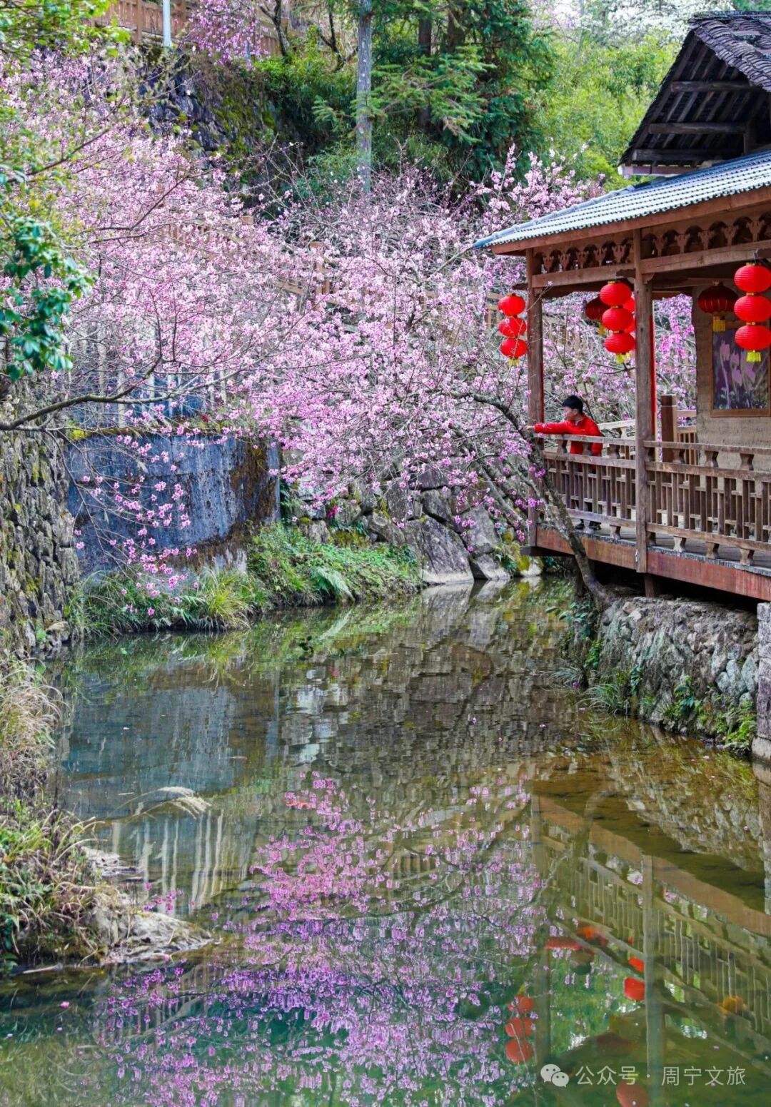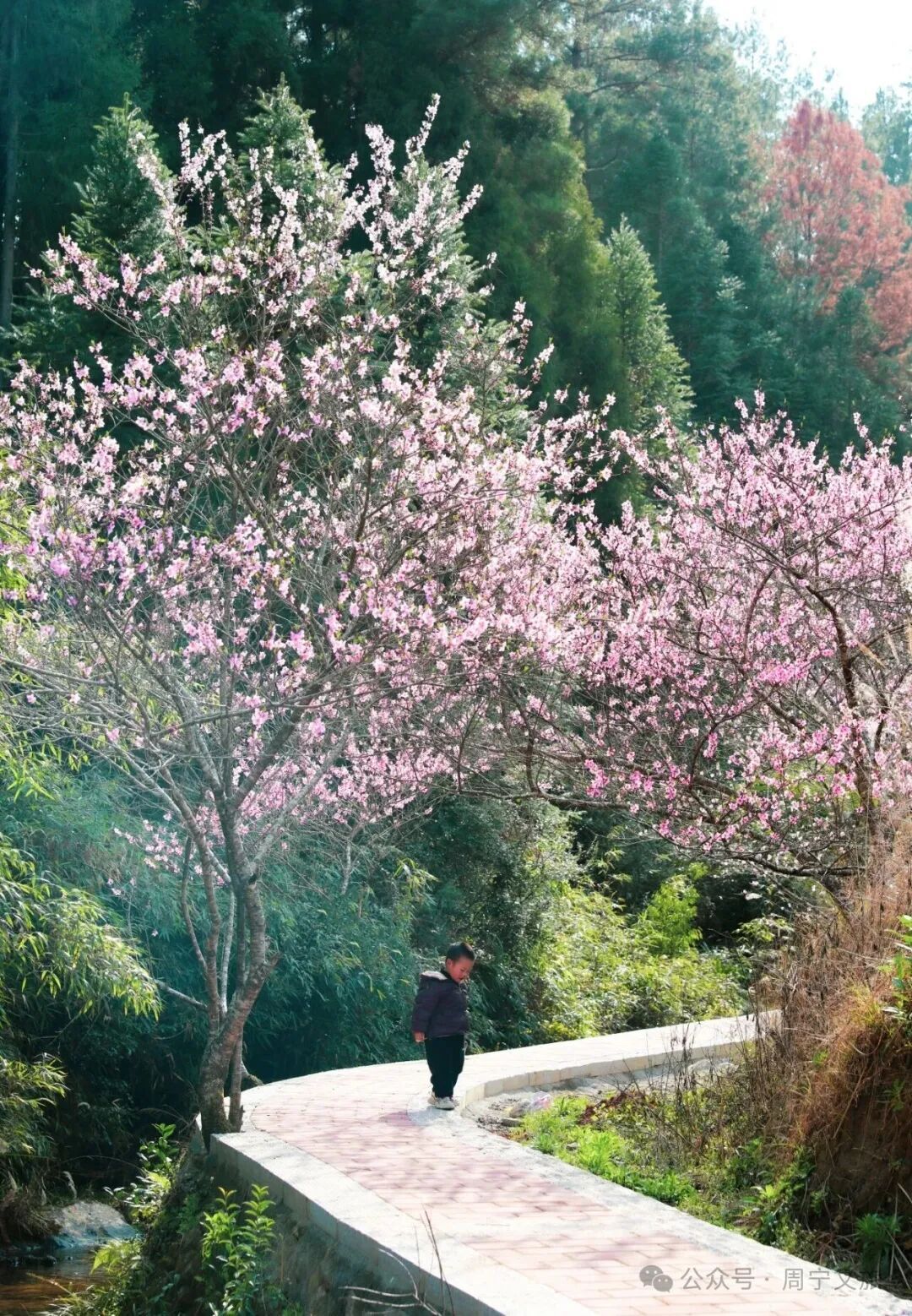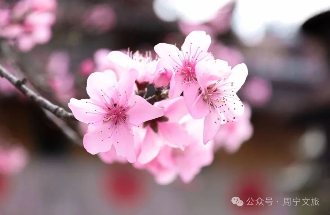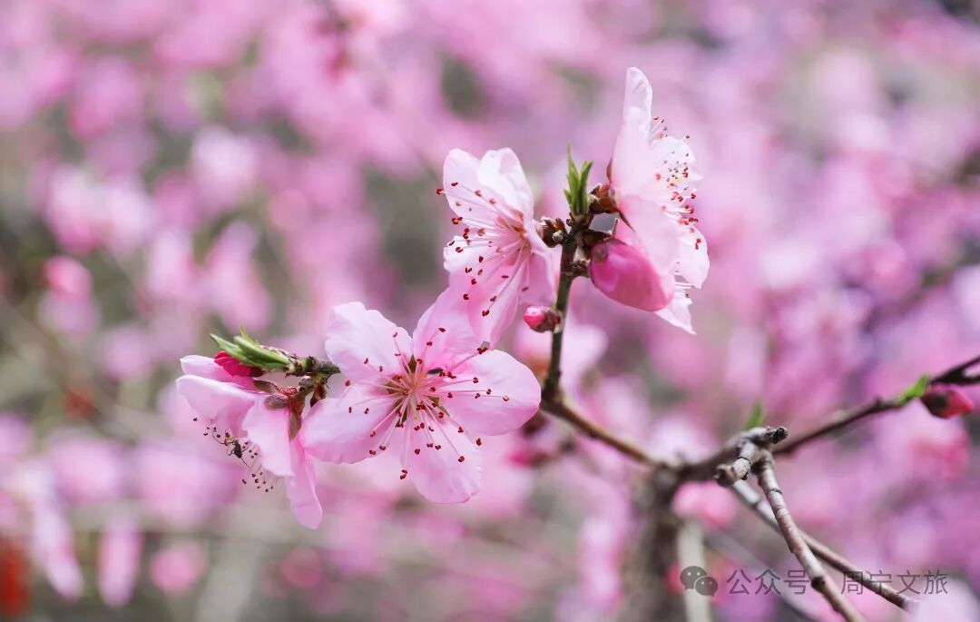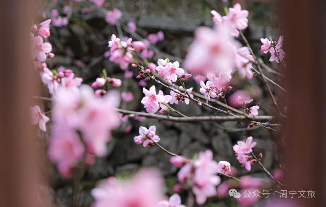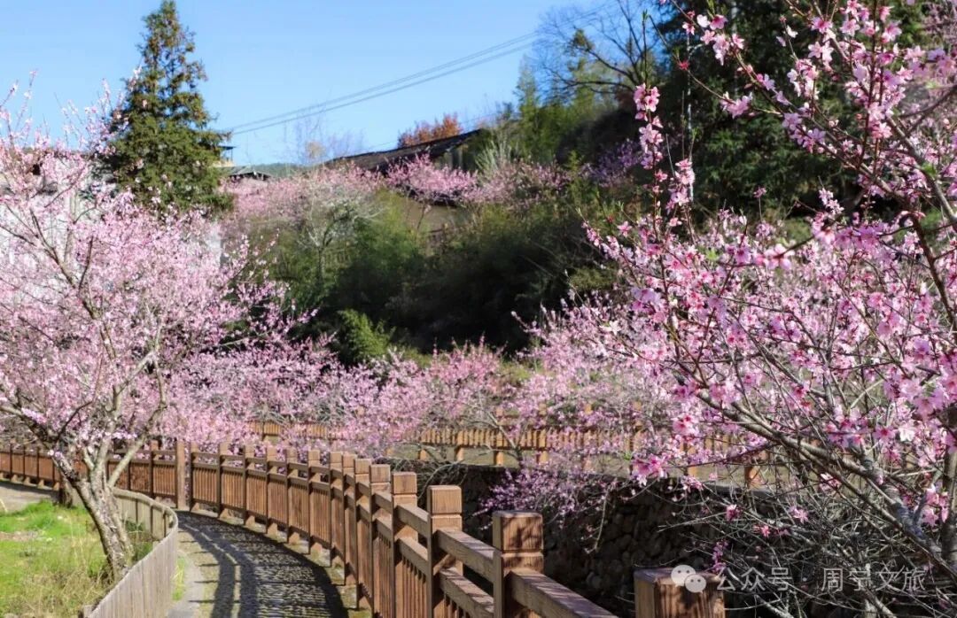 走进桃坑村 目光所及皆是温柔的粉色 成片的桃树延河错落生长 枝头花苞尽数舒展 周宁 · 桃坑村