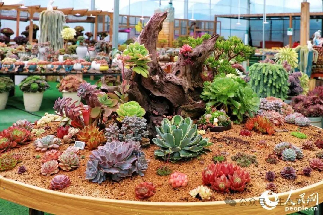 多肉种植园内丰富多彩的多肉。人民网记者 李唯一摄 选择回乡把“种花”作为事业的刘林,已不像三年前那样忐忑不安,多了些笃定和希望——“希望通过多肉种植园,让更多人看到好生态带来的好效益,让更多村民于闲暇时间在家中阳台、庭院养花,在家门口把钱包‘鼓起来’。” |