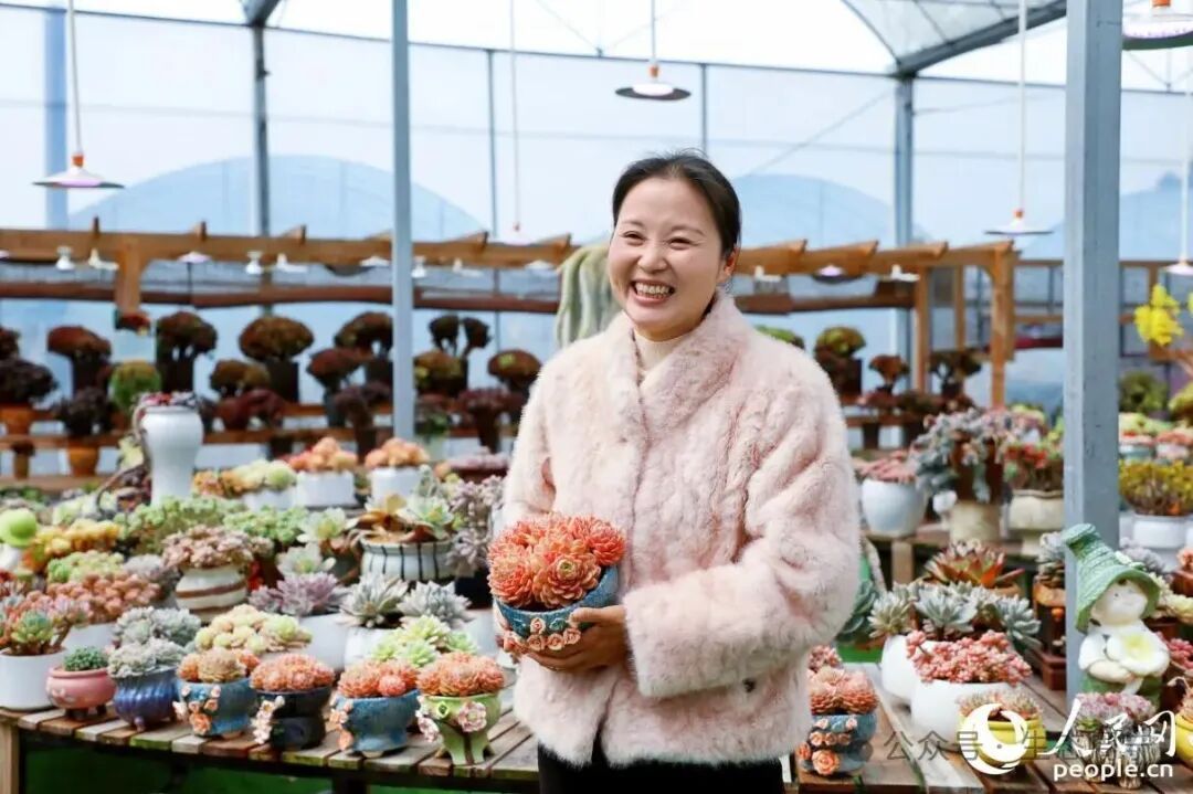 刘林种花的“代表作”——“多肉福板”。人民网记者 李唯一 摄 “当时,县领导特意到家里来和我谈,说种多肉是个好路子,前景好、能赚钱,让我试着市场化,有啥需要县里支持的就提出来。” 2023年7月起,刘林下决心“把热爱变成事业”,在家后边租了一块地,开了公司,试着卖种好的多肉。 不到一年,多肉订单迅猛增长,三百平方米的地眼看着不够用了。这时候,县里给刘林流转了一个闲置的十亩大棚,空间大了,“花样”也变多了,她逐渐把多肉种到五百多种。“泼天的富贵”随之而来——种花带来的年销售额超过百万元。