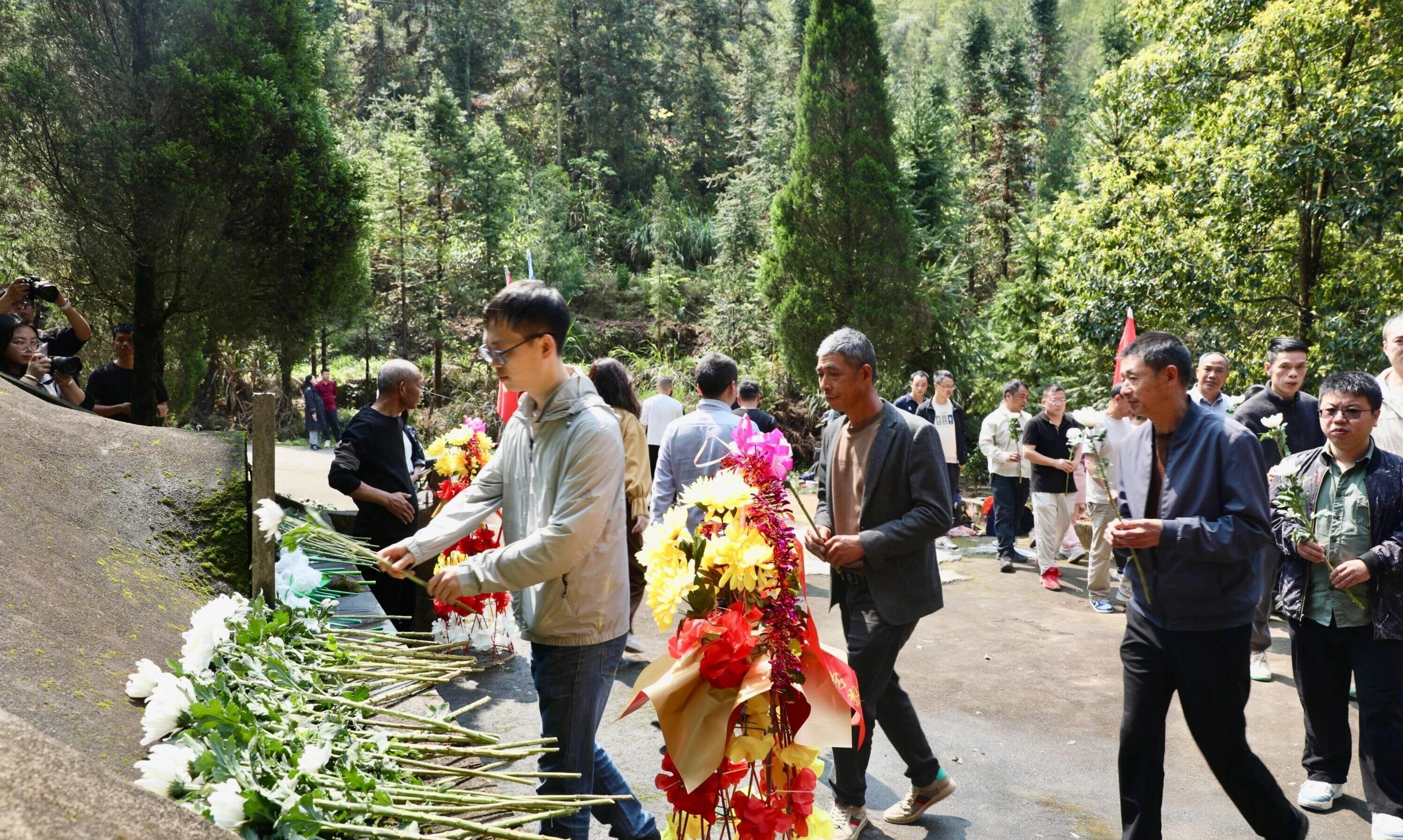 师生们给叶诚忠烈士衣冠冢献花 在叶诚忠烈士衣冠冢,全体肃立默哀,学生、党员代表依次敬献白色菊花,表达对英烈的深切缅怀。在叶诚忠旧居前,全体少先队员在队旗下重温入队誓词,观看事迹展并开展“微党课”,共同感悟革命先烈不畏牺牲、赤诚报国的崇高精神。 据了解,玛坑中心小学已连续8年组织学生开展远足徒步活动,其中结合红色教育的徒步祭扫已开展7次。